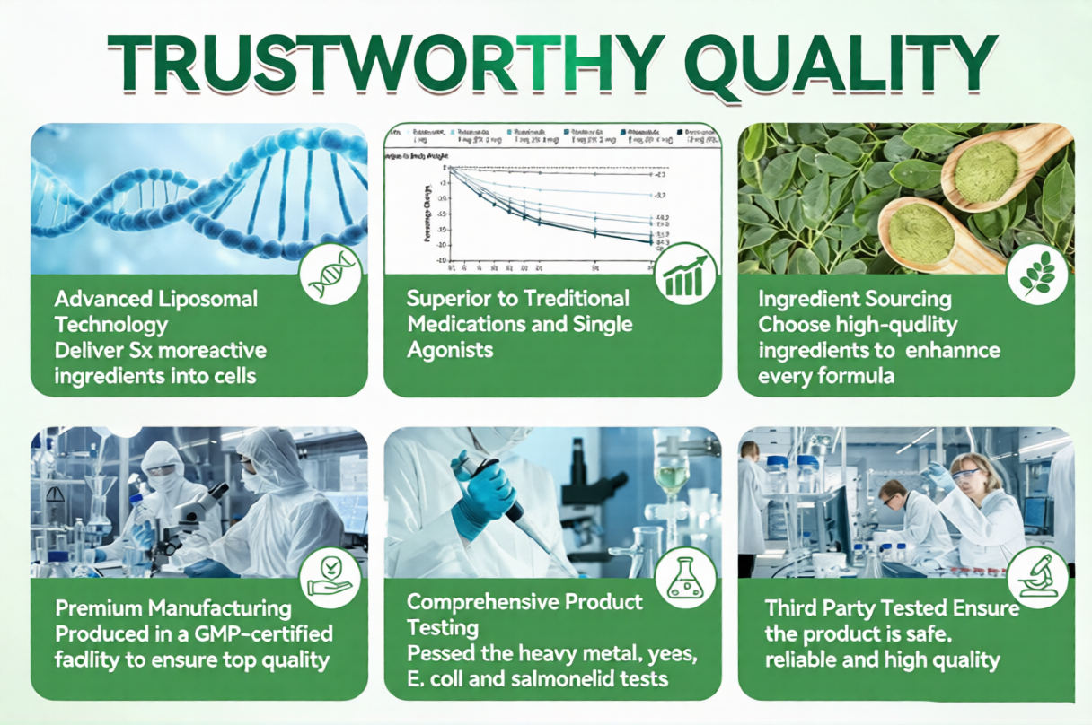 This product meets the quality standards of the Canadian Health Discussion Organization and requires no injections. Based on scientific principles, it provides a safe and comprehensive approach to effectively control weight and promote long-term metabolic health, designed to work in harmony with the body rather than against it.